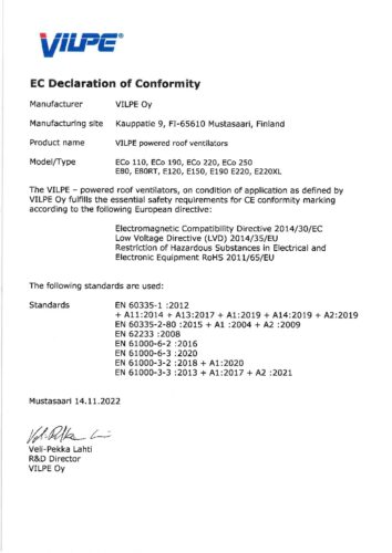 ECO220P/Ø160/500 ВЕНТИЛЯТОР