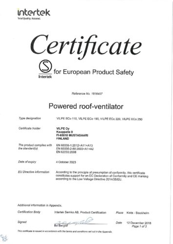 Комплект: ECo220Р/160/500 вентилятор, монтажная инструкция и набор крепежа.