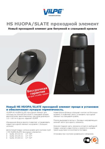 HUOPA/SLATE проходной элемент для монтажа на скатной битумной и сланцевой кровле труб и вентиляторов диаметром 110 –160 мм и антенного ворота.