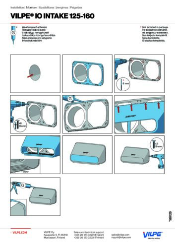 Комплект: VILPE IO INTAKE настенный приточный элемент, набор крепежа и инструкция по монтажу.