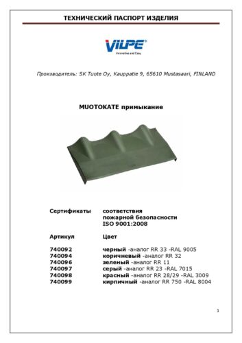 Комплект: MUOTOKATE примыкание и набор крепежа.