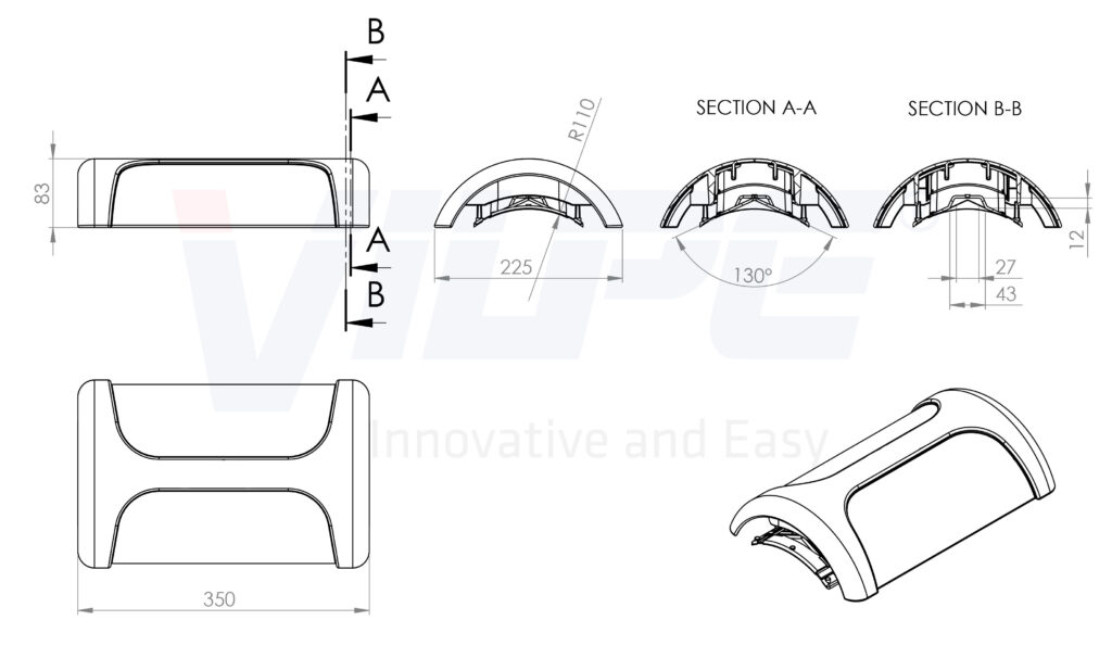 Размеры: 350 х 225 мм, отверстие вентиля соответствует диаметру 160 мм.