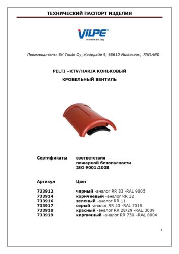 PELTI -KTV/HARJA коньковый вентиль