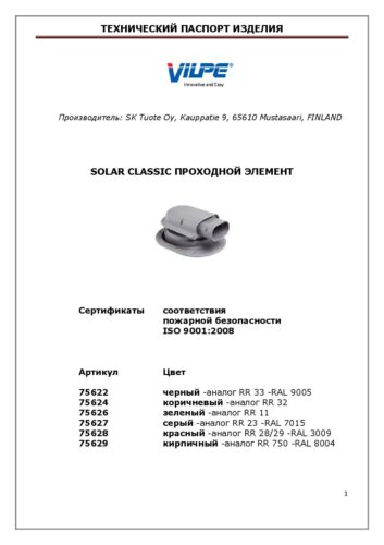 SOLAR CLASSIC ПРОХОДНОЙ ЭЛЕМЕНТ