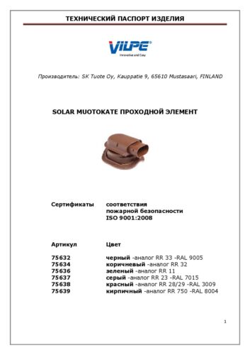 SOLAR MUOTOKATE ПРОХОДНОЙ ЭЛЕМЕНТ