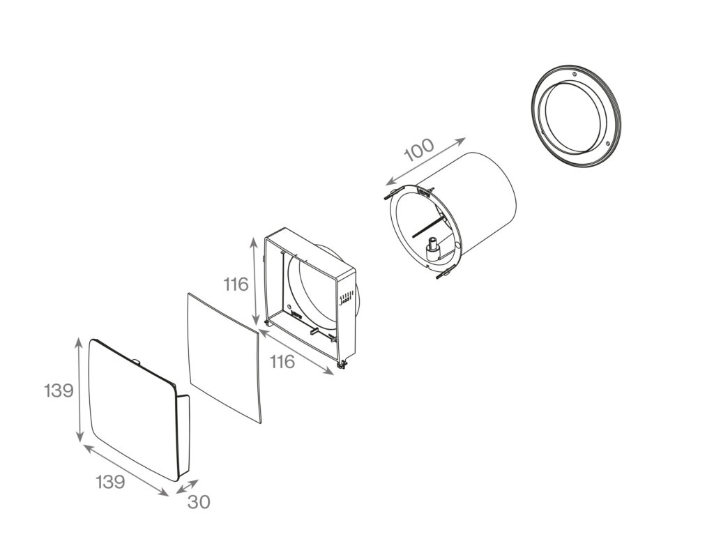 Размеры: приточный вентиль 100 х 100 мм.