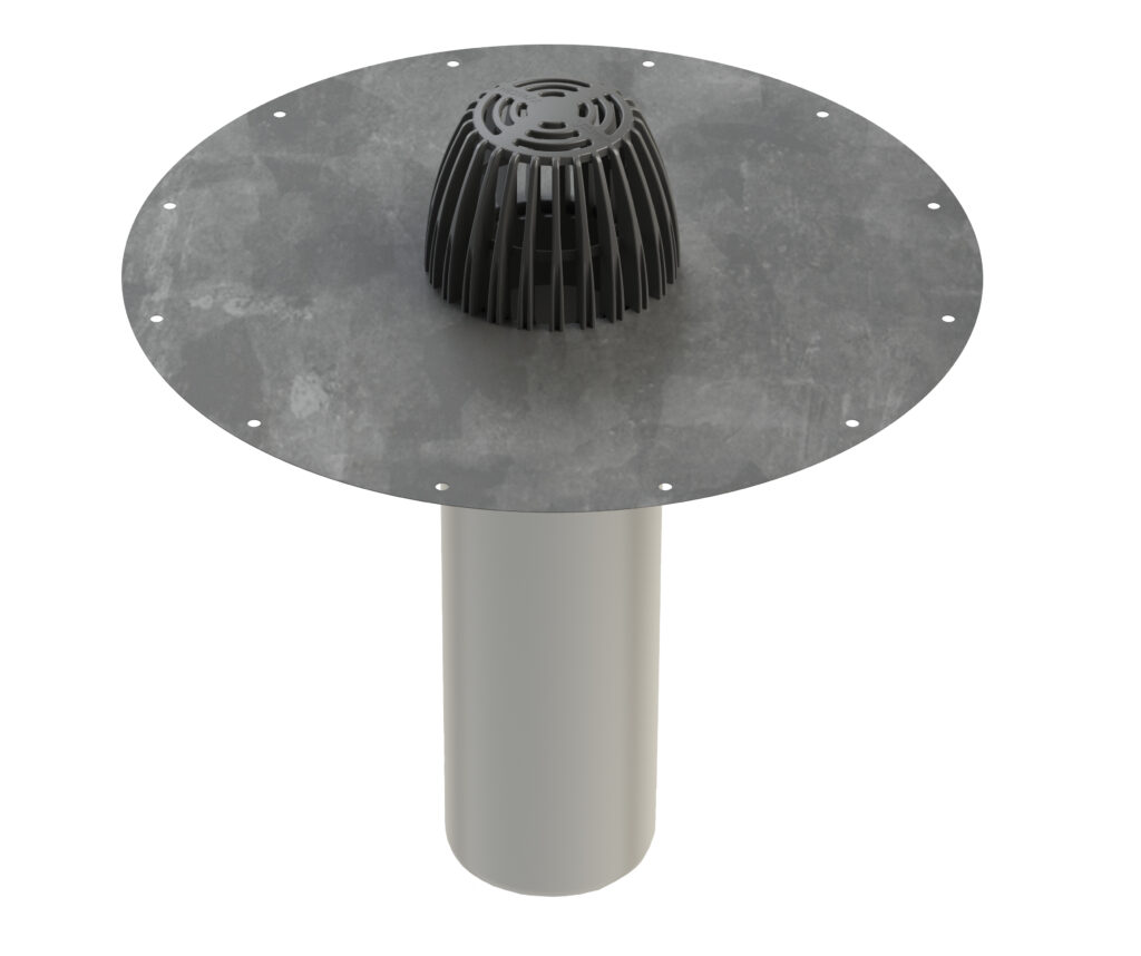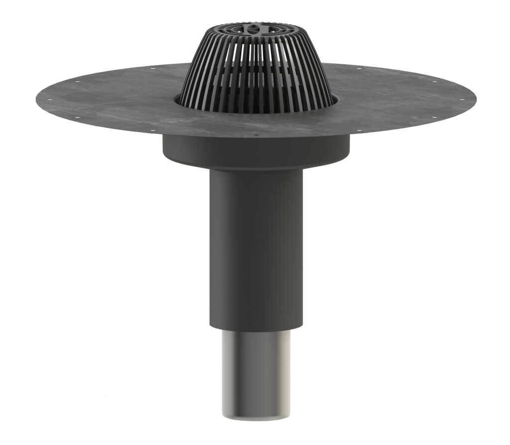 Användningsområden: Insticksbrunn med primad fläns för låglutande tak. Används när man inte vill byta ut en befintlig takbrunn. Insticksbrunnen monteras i den äldre Ø 50 takbrunnen. A-modellens lövsil ingår.