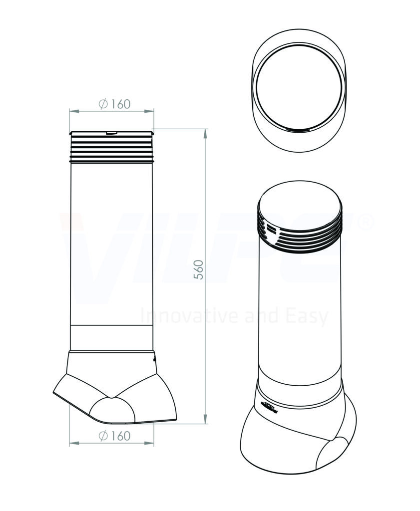 Ett oisolerat ventilationsrör Ø 160 mm. Höjd ovanför tak ca 500 mm. Förutom röret behövs en genomföringssats passande för takmaterialet och vid behov ett formbart rör. För luftning av vind och tak behövs AP Hatt-160 och en takgenomföringssats.
