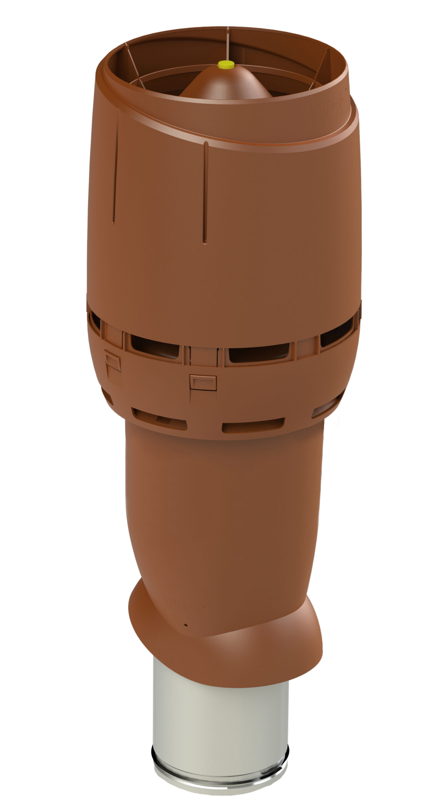 Användning: Den isolerade frånluftshuven med FLOW-hatt riktar luftflödet uppåt och regnvatten hindras att rinna ner i röret. Inre rör är av förzinkad tunnplåt. Används till avluft från ventilationsaggregat eller köksfläkt. Med huven behövs VILPE genomföring enligt takmaterial.