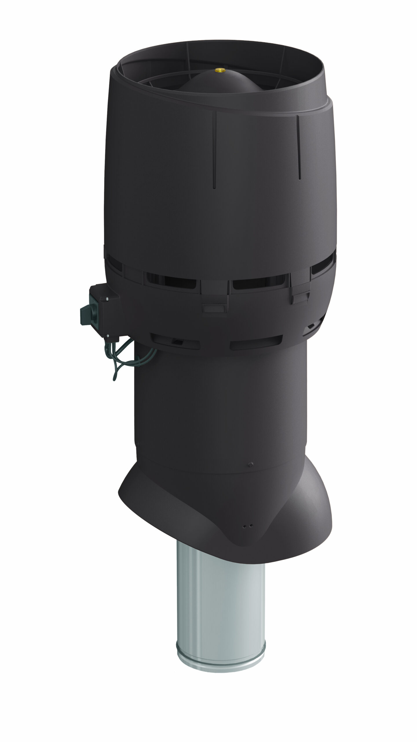 Mått: Kanalstorlek Ø 160 mm, yttermått Ø 305 mm, höjd från takytan ca 700 mm.