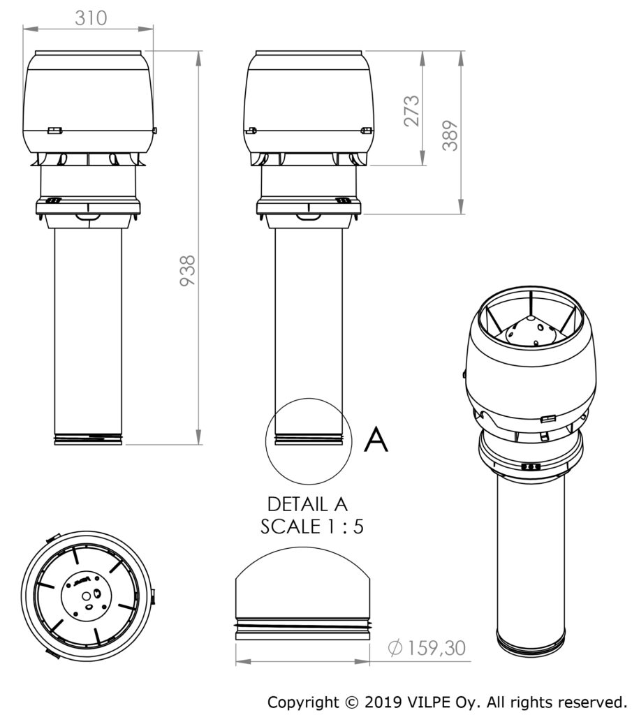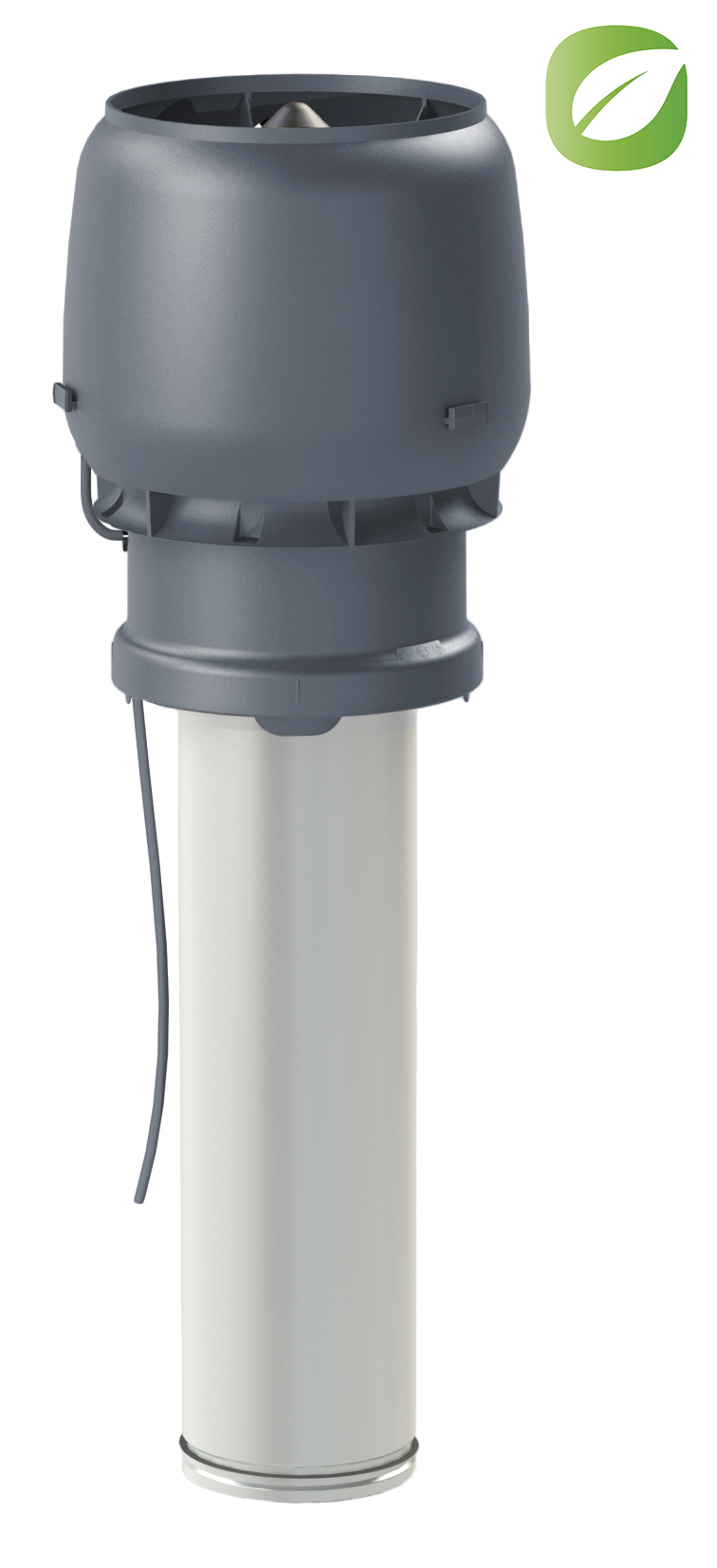 Käyttökohteet: Koneellinen poistoilmanvaihto eri kohteisiin. Energiaa säästävä eristetty tasavirtamoottorillinen huippuimuri, joka on ohjattavissa 0-10 V jännitteellä. Säädin valitaan erikseen: moottorisäädin, ECo Ideal tai liesikupu. Sisäputki, jossa huulitiiviste, sinkittyä rei’itettyä teräsohutlevyä. Asennus peltisepän tekemään kartioon, jonka yläosa on Ø 230 mm
