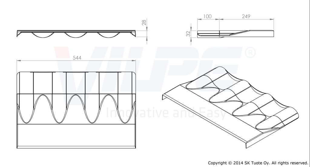Användning: Med hjälp plåtanslutningen ansluts en slät plåt, exempelvis ovanför en skorsten, till ett tak av betongpannor. Plåtanslutningen är gjord för tvåkupiga betongpannor med bredd 330, exempelvis Monier, Benders mm.