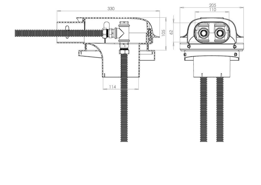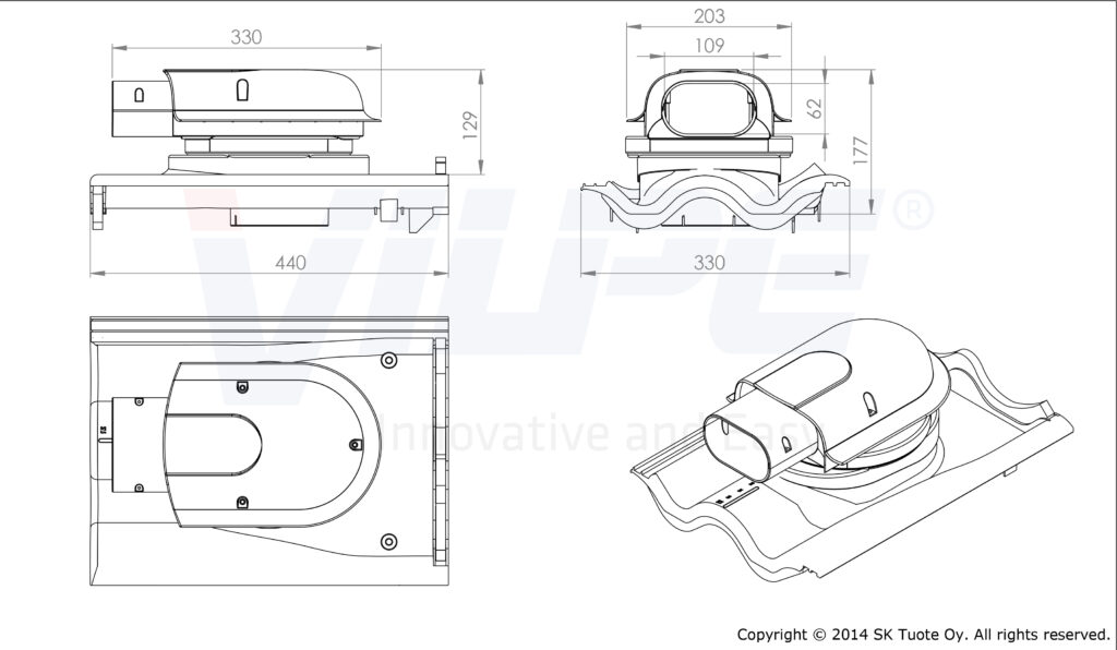 Användning: Ersätter en 2-kupig takpanna och passar för de flesta 2-kupiga betongpannor med bredden 330 mm. För genomföring av rör till solfångare och -paneler, kablar eller andra mindre rör genom taktäckningen.
