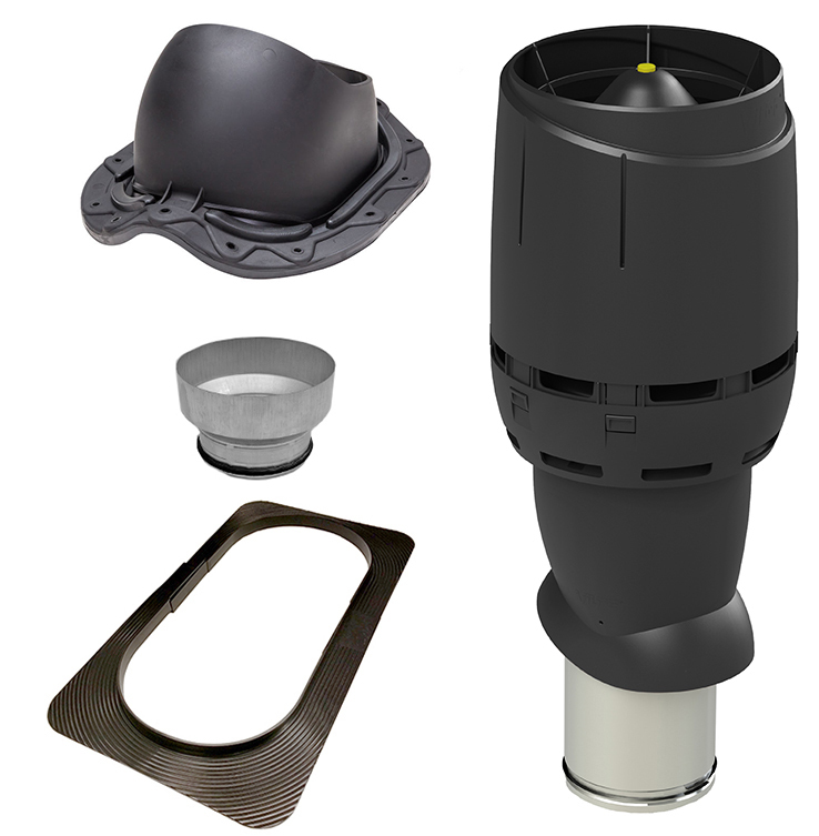 VILLAFLÄKT ECO160P FLOW 2-KUP BETONG För spiskåpor och frånluftsventilationInnehåller takfläkt, genomföring och undertaksring