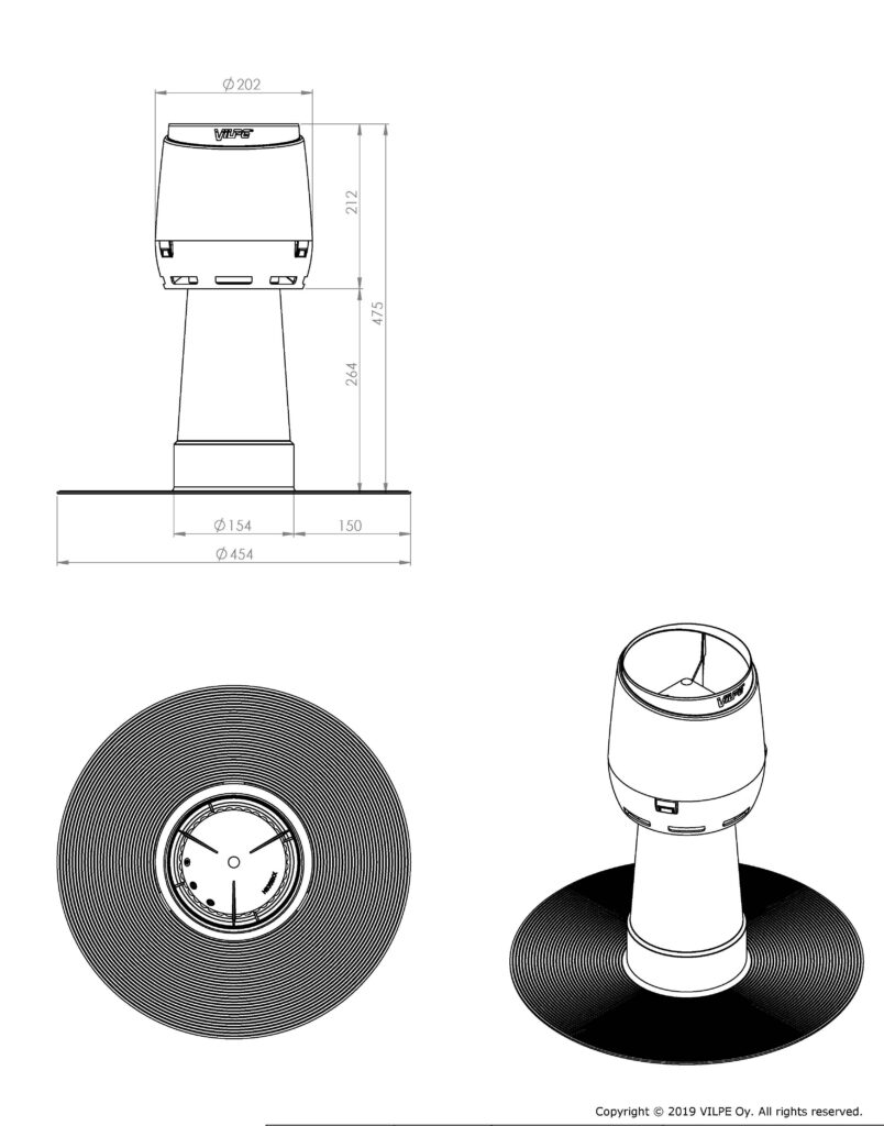 Dimensioner: Ø 110 mm, höjd 476 mm, fläns 150 mm.