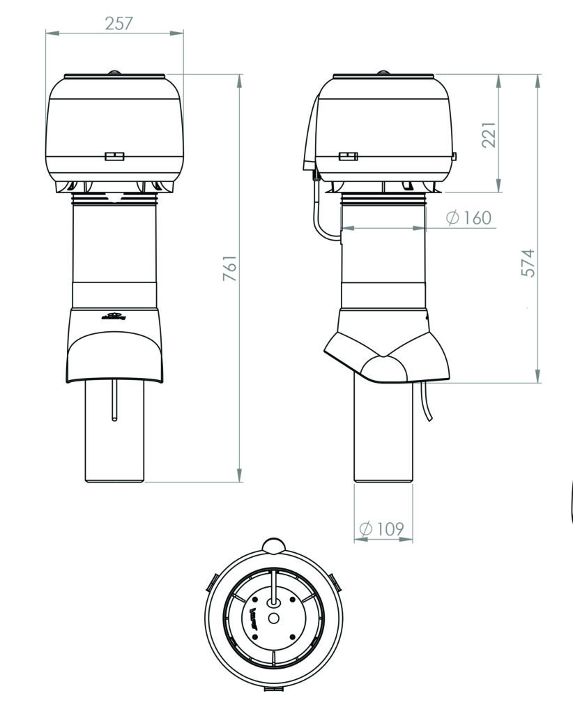 Användning: Isolerad takfläkt för radon eller eko-toalett. Energibesparande EC-motor. Motorn är extrakapslad samt förinställd på en styrsignal om 3V. Kan enkelt justeras via potentiometer i hatten. Ingen extra extern reglering behövs. Med fläkten behövs VILPE genomföring enligt takmaterial. Maxflöde 150 l/s.