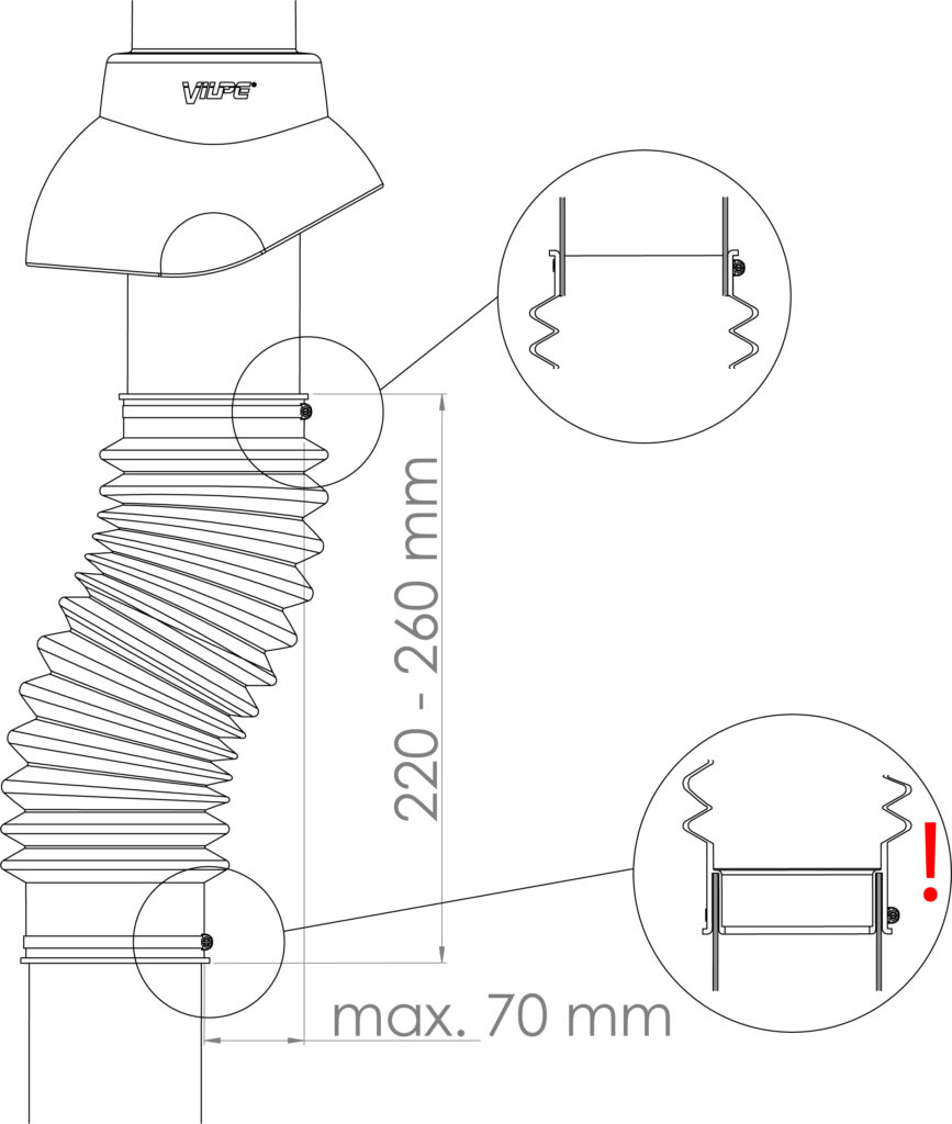 Användning: Anslutningsrör mellan avloppsluftare eller KTV ventilationsats (med adapter) och ett Ø110 mm avloppsrör. Dimensioner: Ø110 mm. Innehåll: Flex-rör, klämringar.