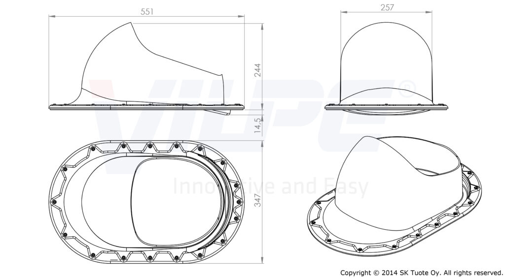 Dimensioner: Längd 551 mm, bredd 347 mm.